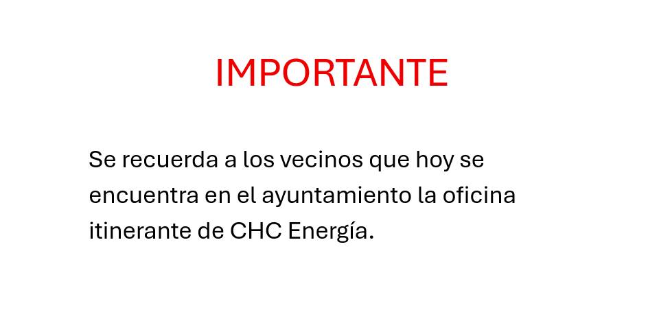 Se recuerda a los vecinos que hoy se encuentra disponible la oficina itinerante de CHC Energía en el ayuntamiento